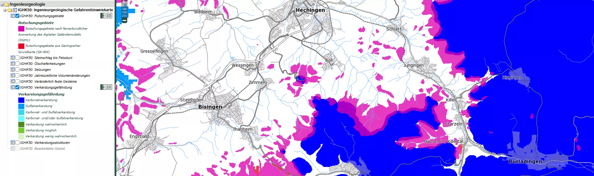 Zentrale Aufgabe der Landesingenieurgeologie ist die landesweite Erfassung, Dokumentation und wissenschaftliche Bearbeitung der hierfür relevanten Daten. Dies beinhaltet u. a. die Dokumentation von Ereignissen, z. B. neu entstandenen Erdfällen oder Rutschungen. Für einen möglichst vollständigen Datensatz an neu aufgetretenen Ereignissen ist die Landesingenieurgeologie auf Meldungen aus der Bevölkerung angewiesen (genaue Lage, Größe und Tiefe, Entstehungsalter sowie – falls vorhanden – aussagekräftige Fotos). Außerdem werden die geologischen Einheiten im Hinblick auf ihre geotechnischen Eigenschaften klassifiziert bzw. mit Kennwerten versehen. Die Klassifizierung der Gesteinseinheiten erfolgt u. a. zu geotechnischen Fragestellungen, die zu schwierigen Baugrundverhältnissen führen können.