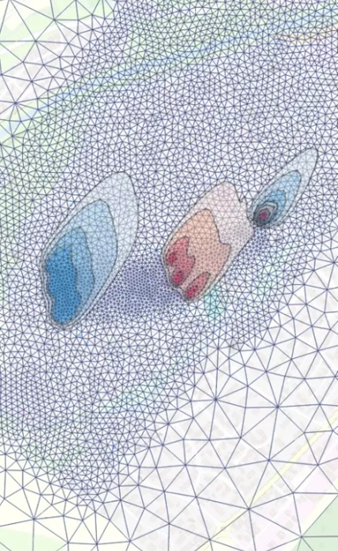 Beispielhaftes Modellgitter einer berechneten Temperaturfeldänderung mit LGRBtom